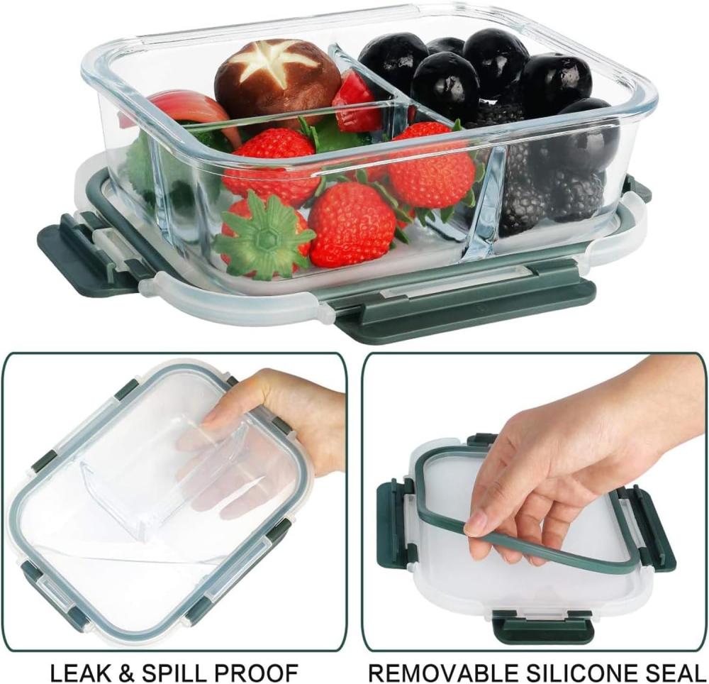 - ميزة التحكم في حصة التقديم: تتيح لك ميزة التحكم في الكميات في حاويات الغداء الزجاجية المقسمة استعادة التحكم في وجباتك. تسهل الحاويات الزجاجية المكونة من قسمين تنظيم وجباتك والحفاظ على خطة نظامك الغذائي.